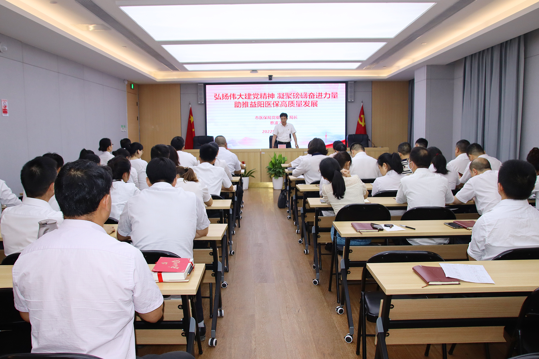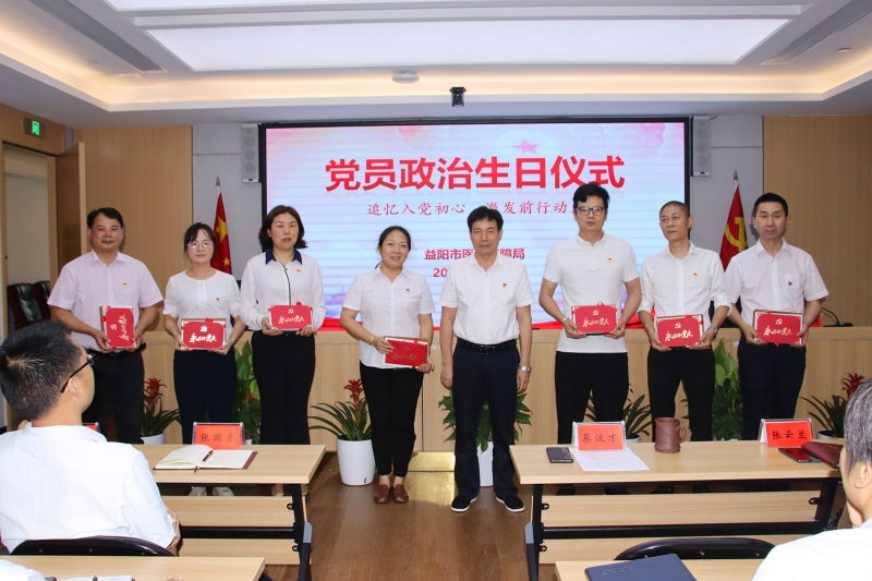 现场,全体党员重温入党誓词,党员代表刘征分享了入党初心。局党组书记、局长蔡波才为历年7月入党的同志赠送了“政治生日”贺卡及礼物,并以《弘扬伟大建党精神 凝聚磅礴奋进力量 助推益阳医保高质量发展》为题,为全体党员干部讲授主题党课,党课回顾了我党的奋斗历程,详细阐述了我党的伟大成就,讲述了新时代中国共产党党员如何立足岗位,服务人民;并勉励大家要时刻牢记全心全意为人民服务的宗旨,聚焦医保主责主业,认真履职尽责,为加快推进经办服务事项下沉,打造“15分钟医保服务圈”,提升医保服务质效,贡献应有的力量。