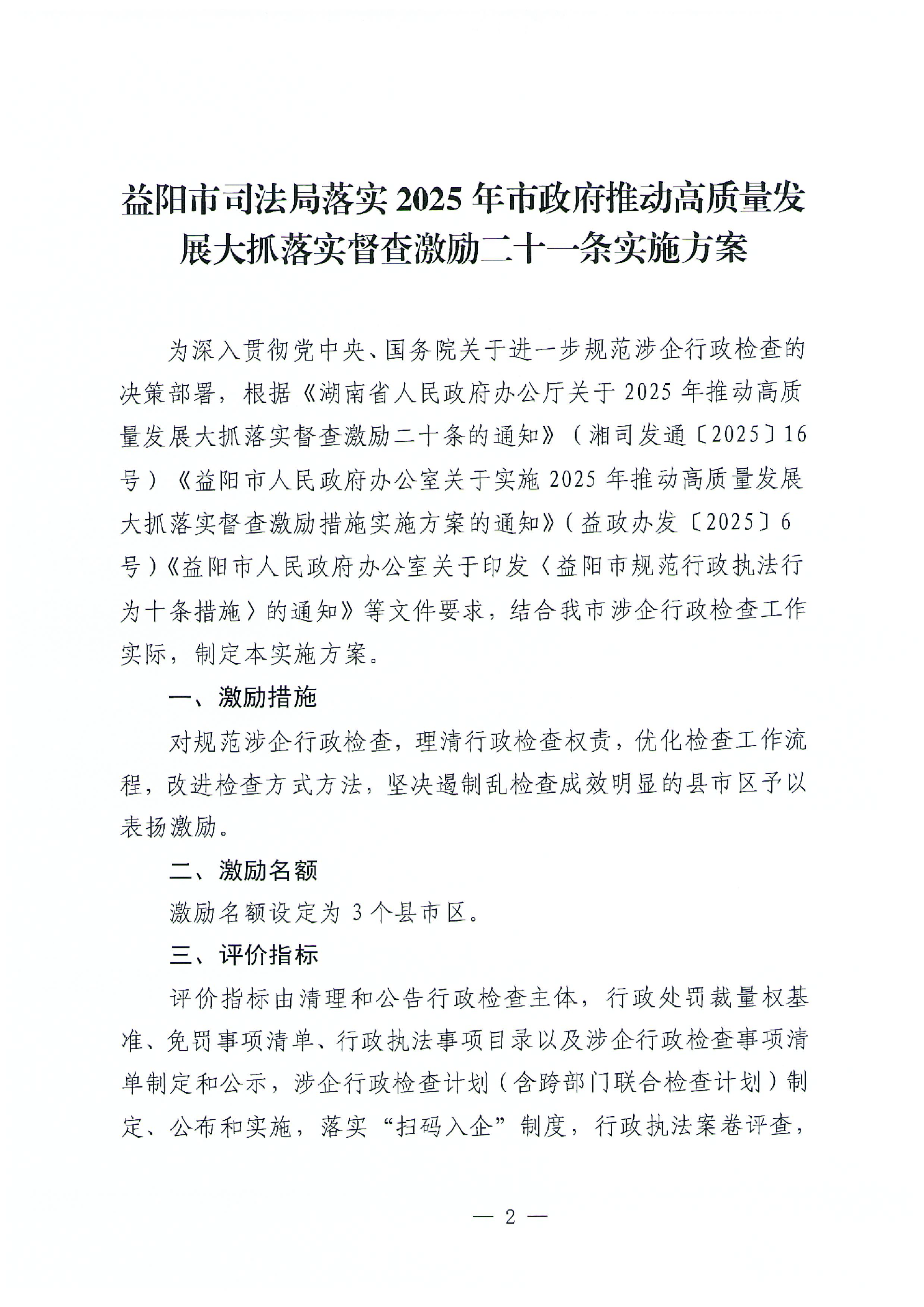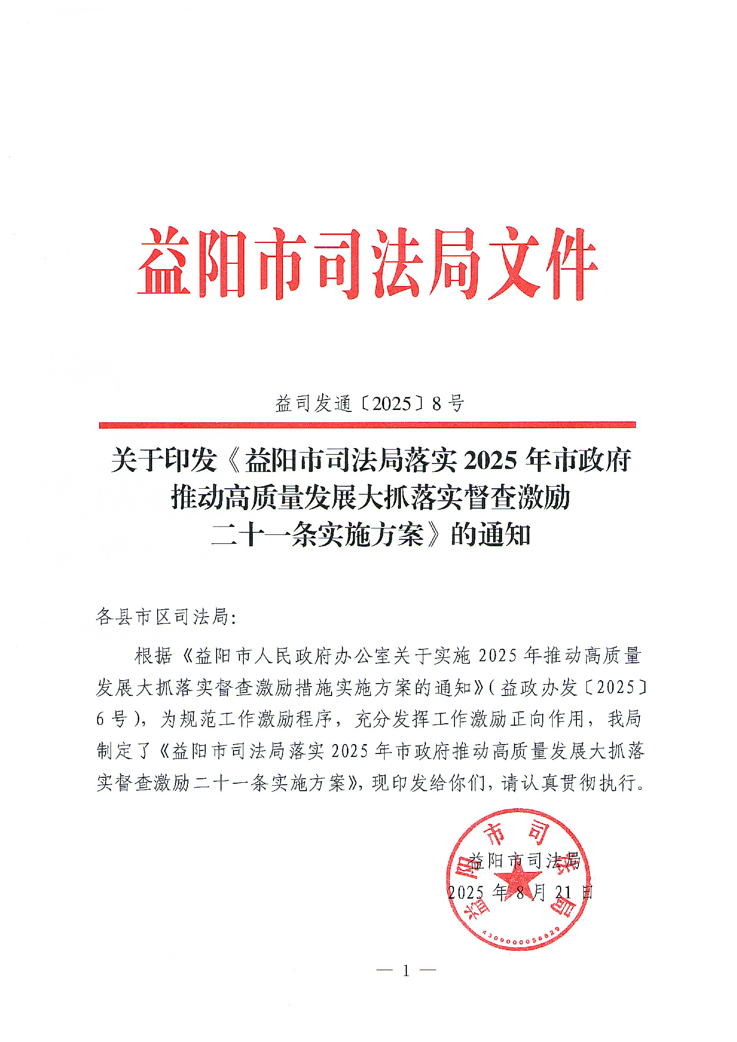 关于印发《益阳市司法局落实2025年市政府推动高质量发展大抓落实督查激励二十一条实施方案》的通知
