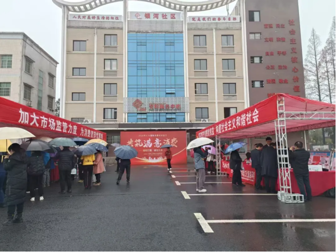3月14日上午,在河坝镇银河社区大通湖区卫生健康和市场监督管理局组织开展3·15国际消费者权益日活动。