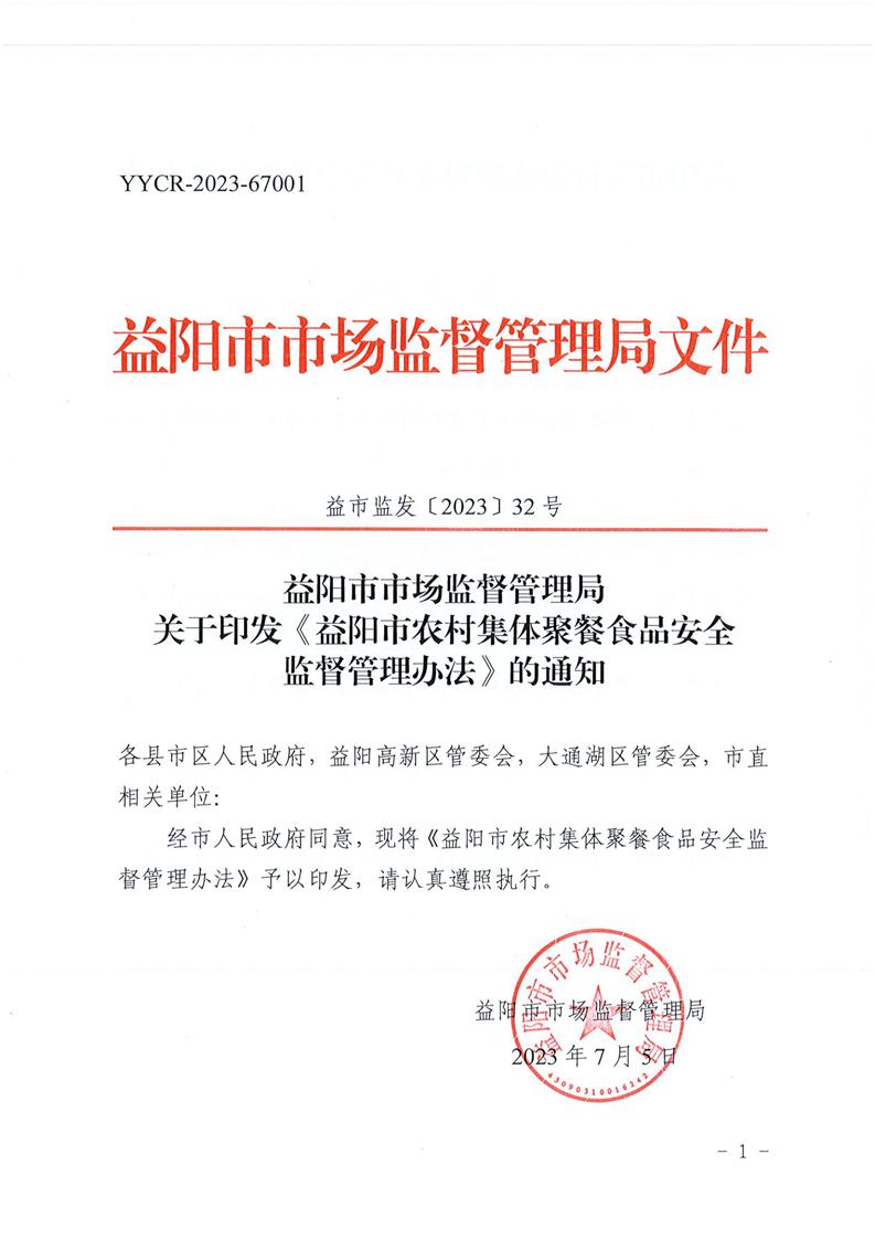 | 关于印发《益阳市农村集体聚餐食品安全监督管理办法》的通知 |