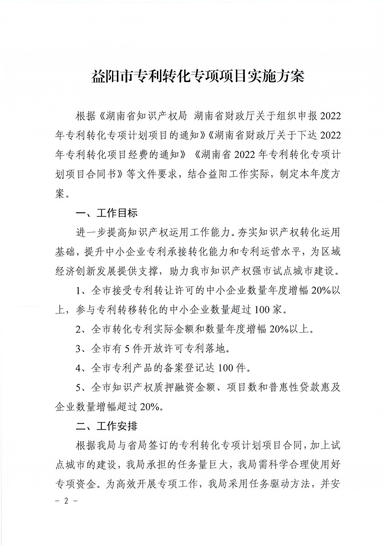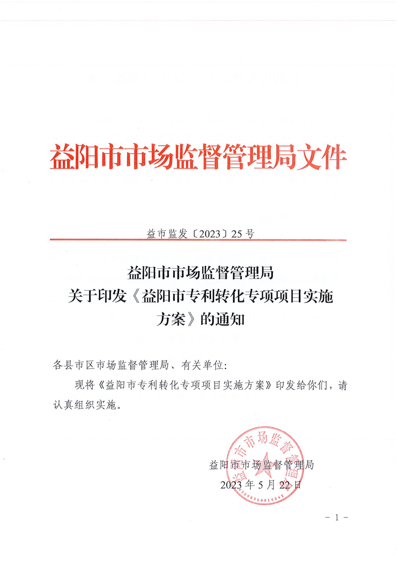 | 关于印发《益阳市专利转化专项项目实施方案》的通知 |