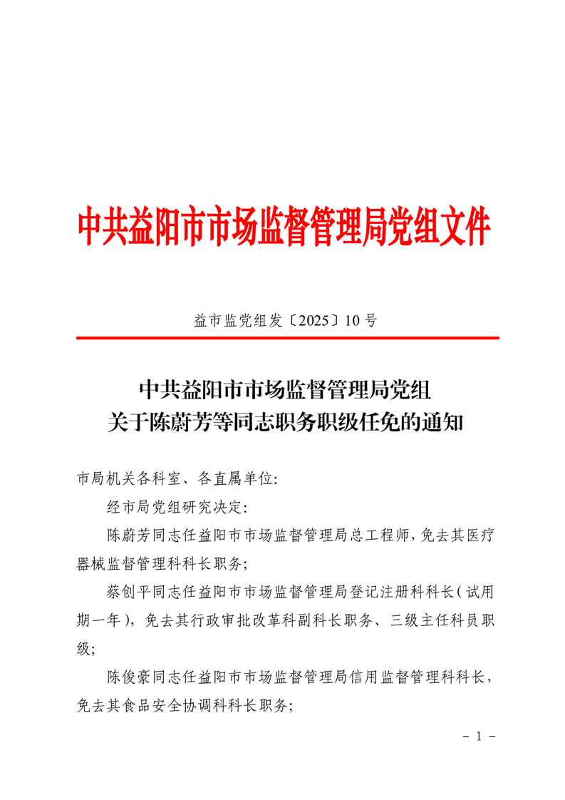| 关于陈蔚芳等同志职务职级任免的通知 |