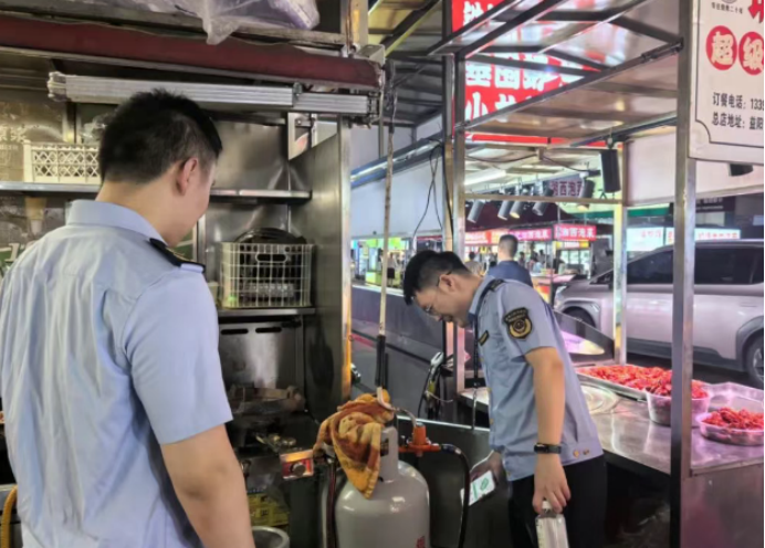 7月3日晚,赫山区市场监管局在羊舞岭夜市开展了液化气钢瓶及软管专项检查行动。