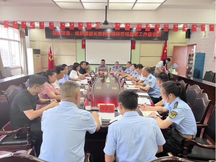 10月9日,安化县委常委、县委组织部部长郭剑锋带队调研市场监管工作,与安化县市场监管局班子成员、部分中层干部进行座谈交流,县人民政府副县长阳锋参加。