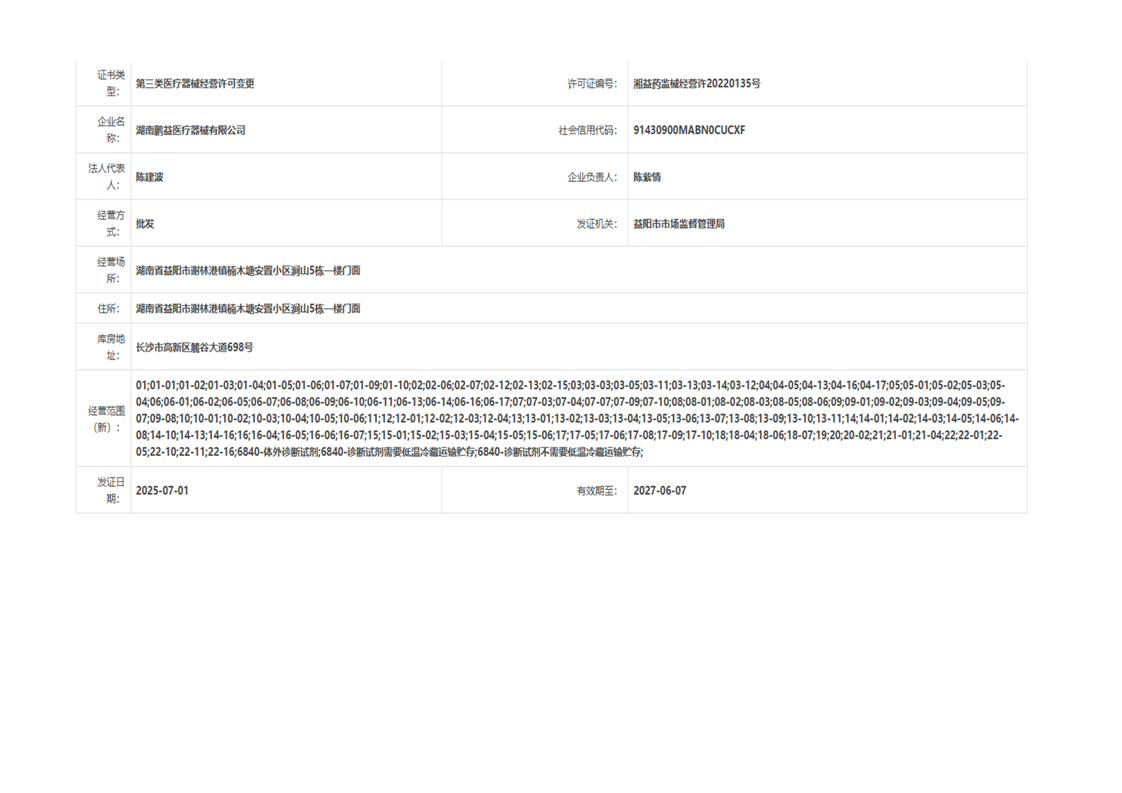 | 医疗器械生产经营许可(备案)信息公示(2025年第25号) |