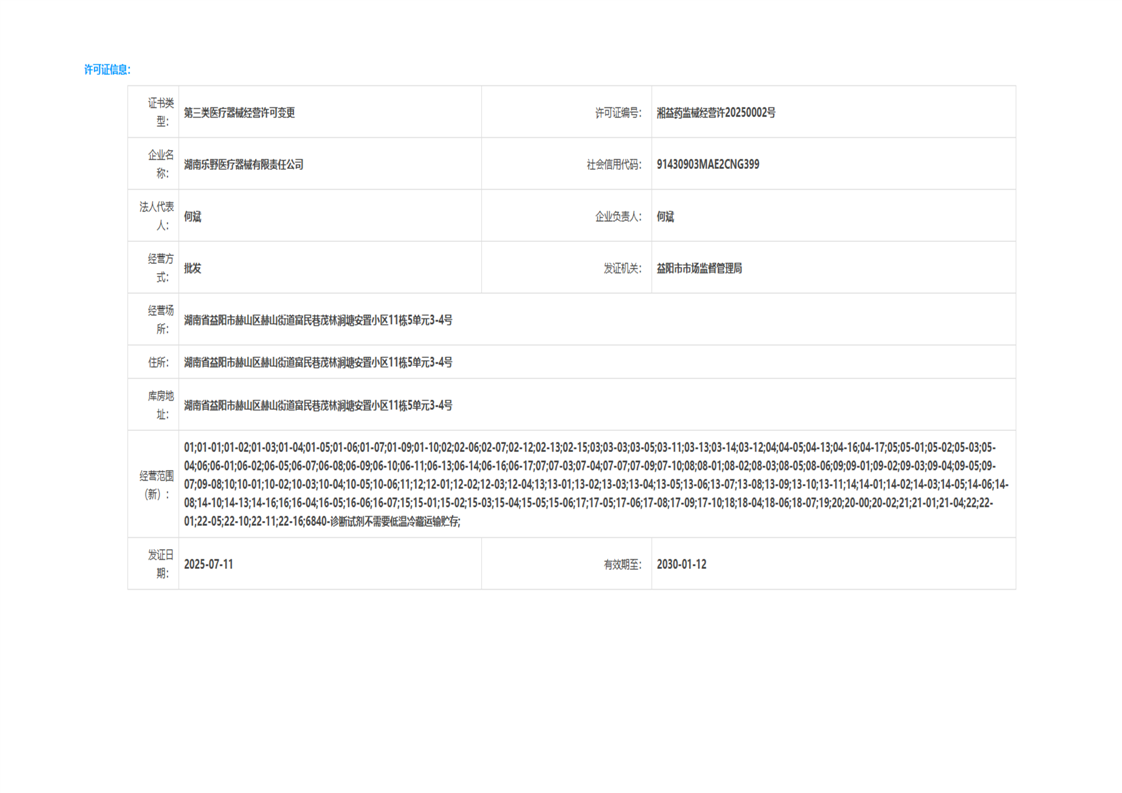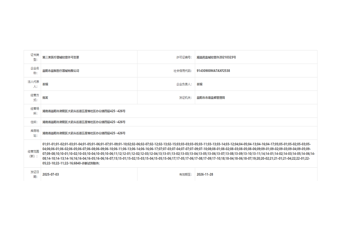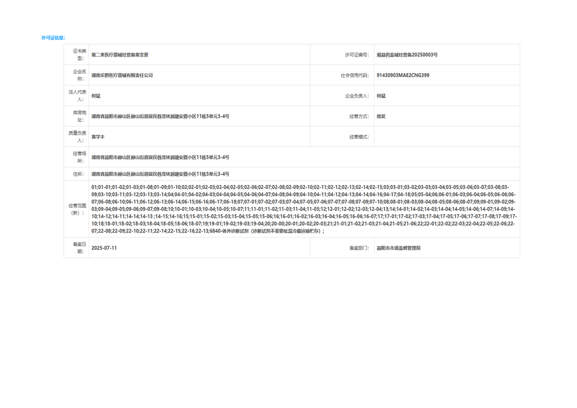 | 医疗器械生产经营许可(备案)信息公示(2025年第26号) |