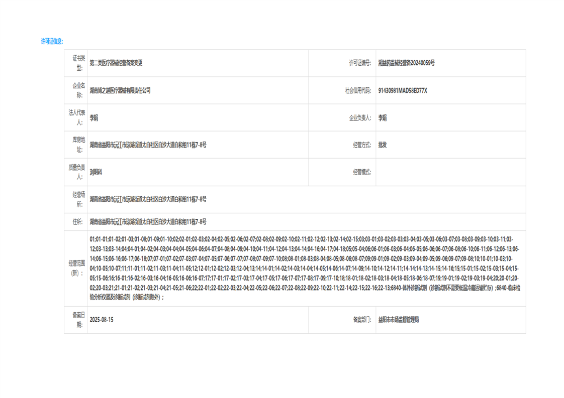 | 医疗器械生产经营许可(备案)信息公示(2025年第31号) |
