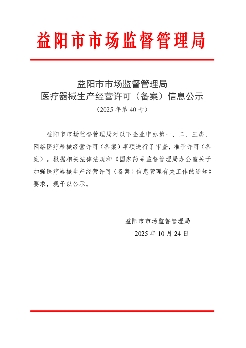 | 医疗器械生产经营许可(备案)信息公示(2025年第40号) |