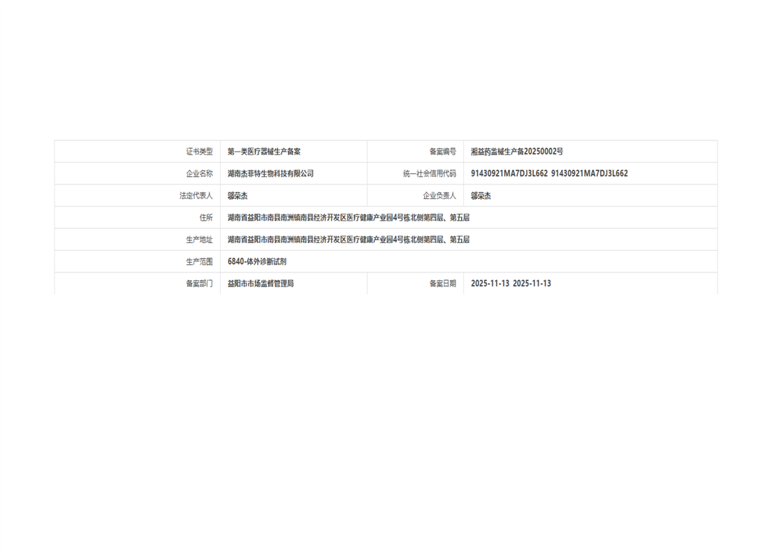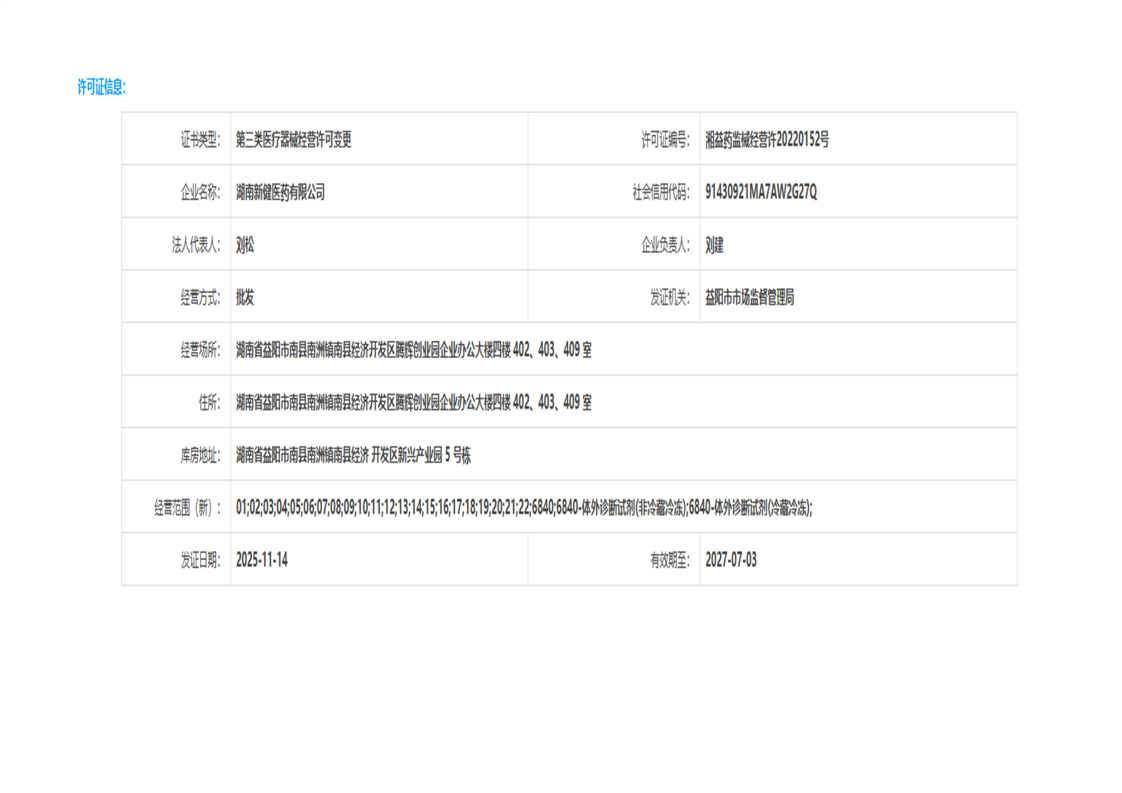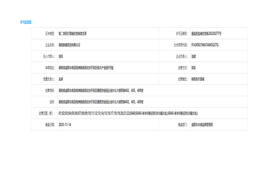 | 医疗器械生产经营许可(备案)信息公示(2025年第43号) |