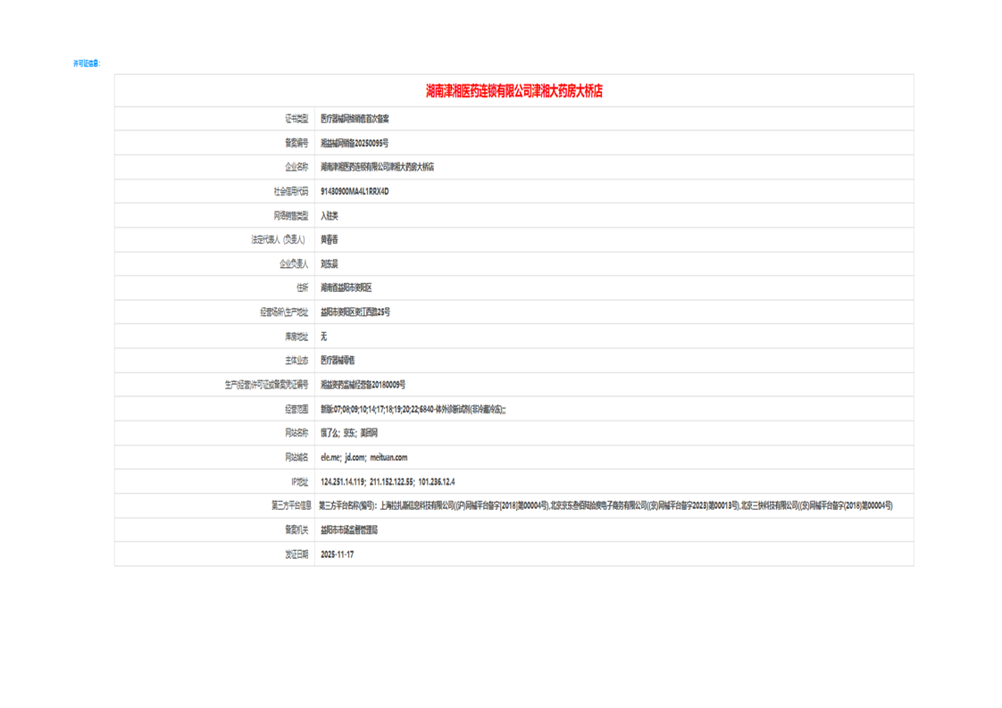 | 医疗器械生产经营许可(备案)信息公示(2025年第44号) |