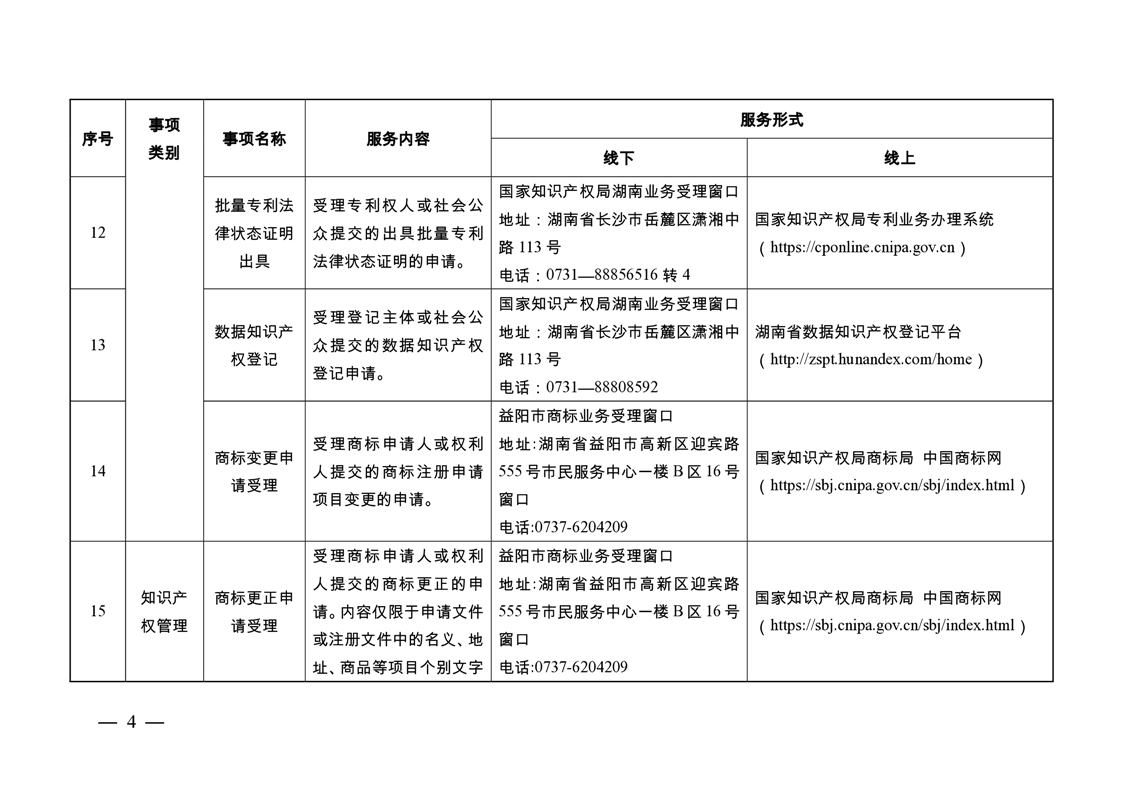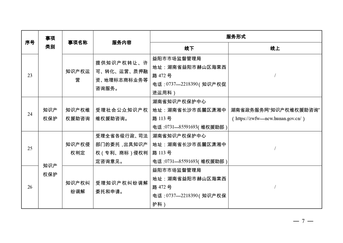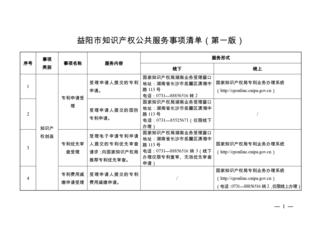 | 益阳市知识产权公共服务事项清单(第一版) |