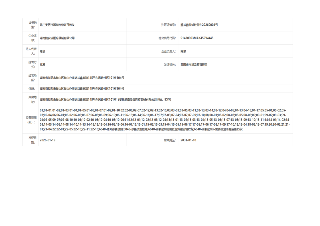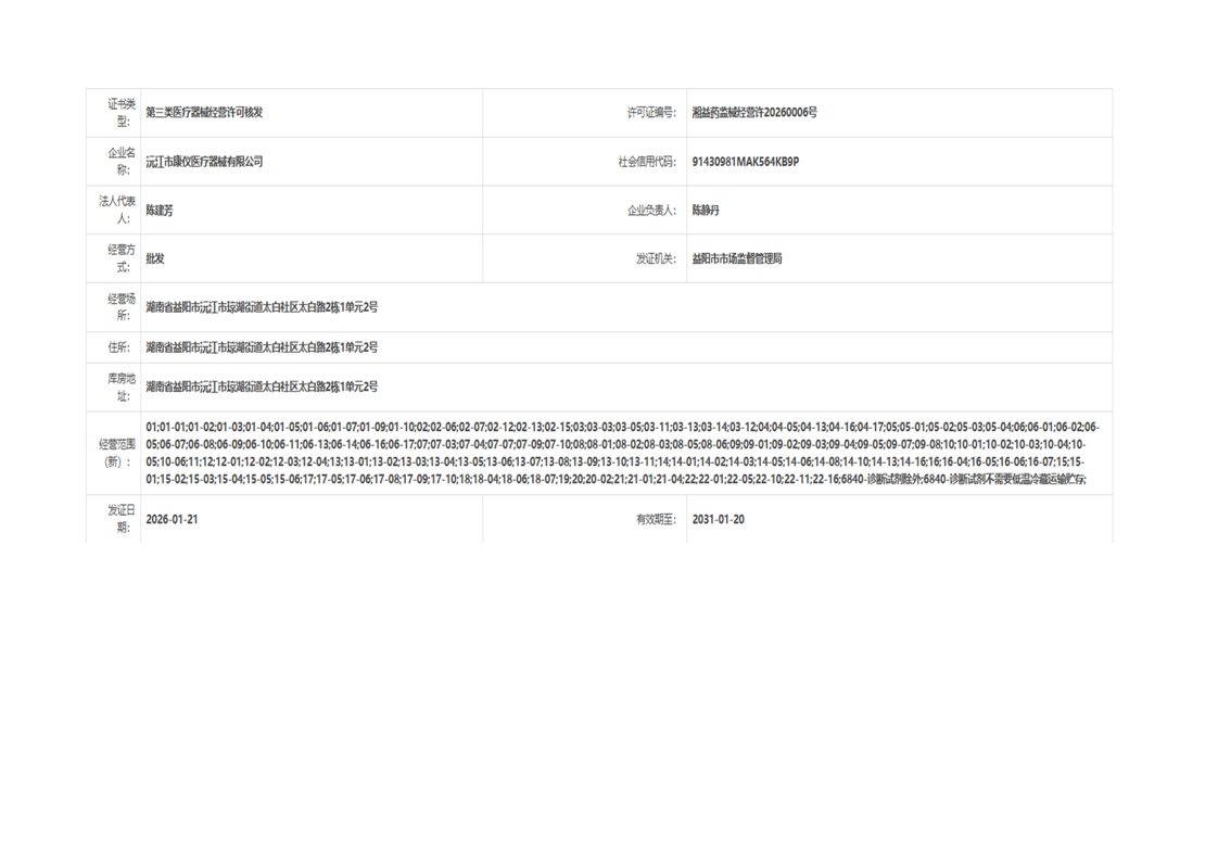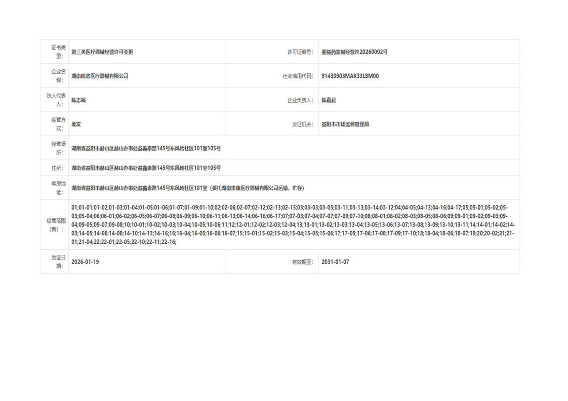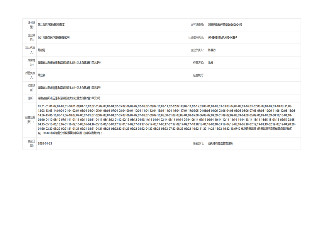 | 医疗器械生产经营许可(备案)信息公示(2026年第03号) |