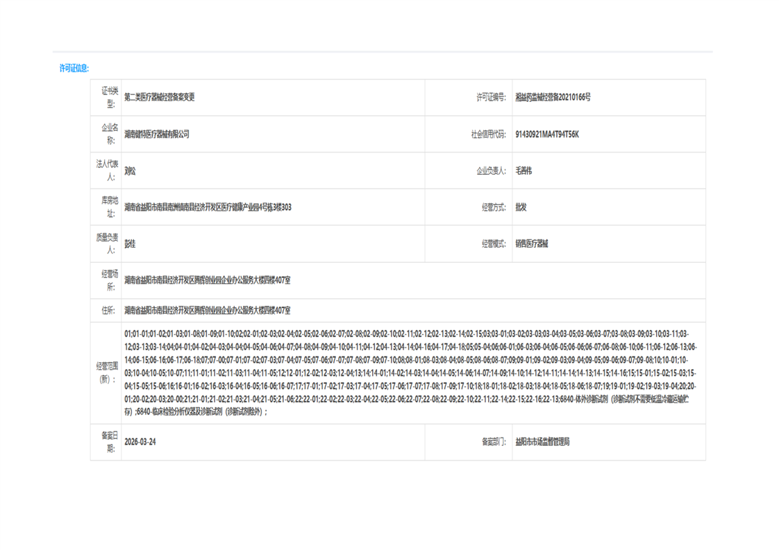 | 医疗器械生产经营许可(备案)信息公示(2026年第10号) |