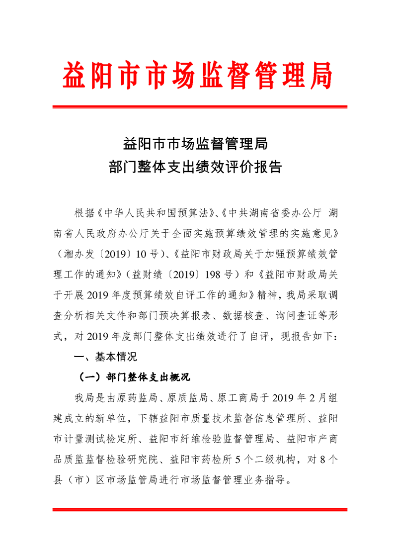 | 益阳市市场监督管理局部门整体支出绩效评价报告 |