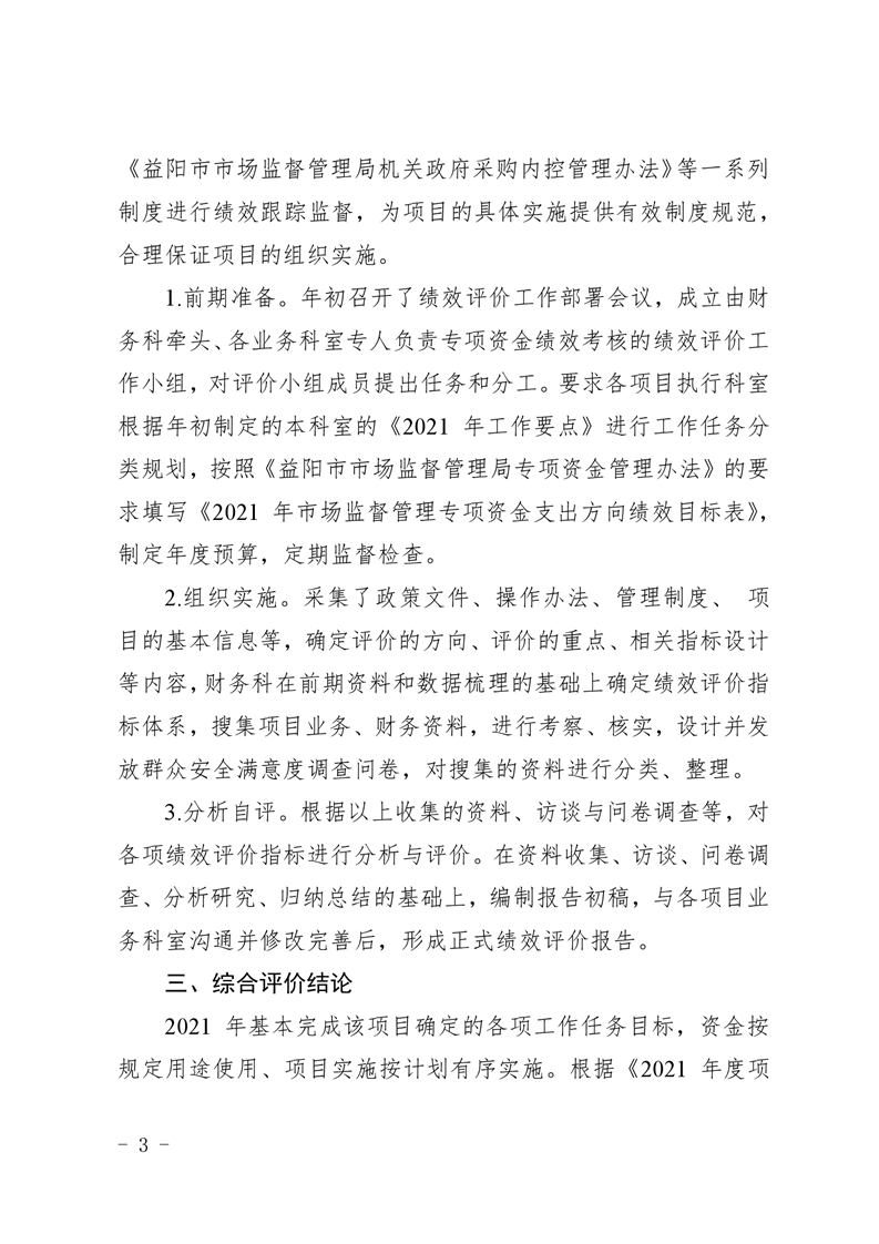 | 2021年度市场监督管理项目资金绩效自评报告 |