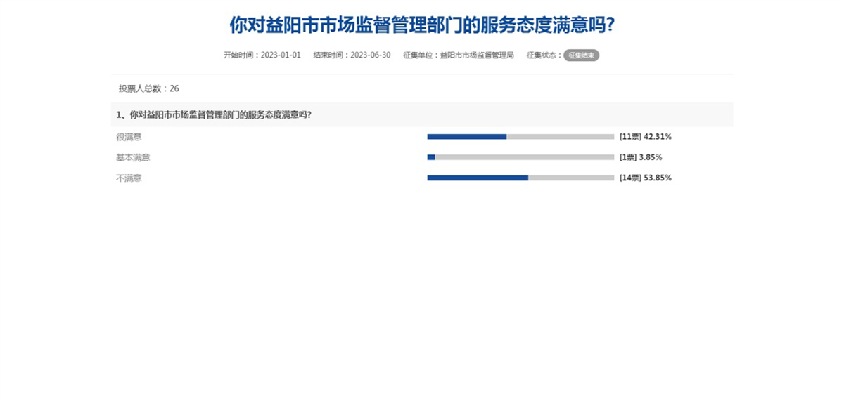 | 关于问卷调查“你对益阳市市场监督管理部门的服务态度满意吗”的结果反馈 |