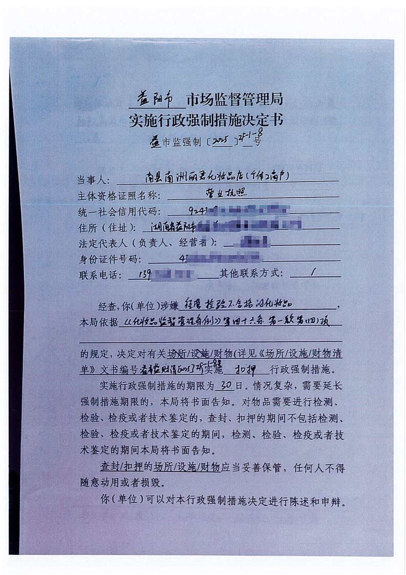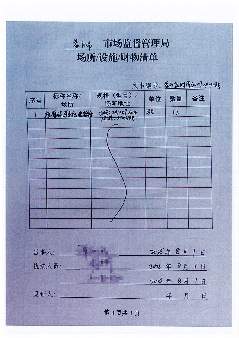 | 益市监强制 [2025] ZF-1-8号 |