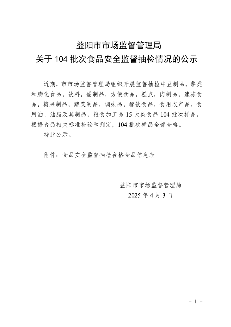| 关于104批次食品安全监督抽检情况的公示(2025年03月份) |