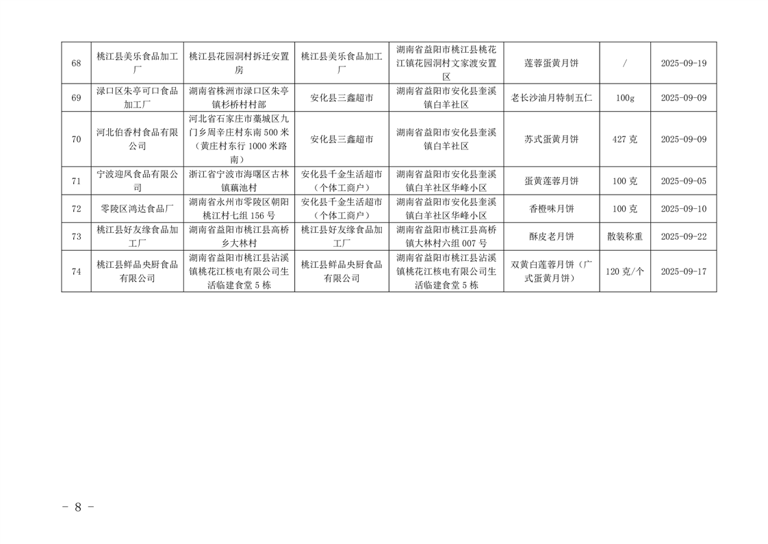 | 关于74批次月饼食品安全监督抽检情况的公示(2025年中秋节) |