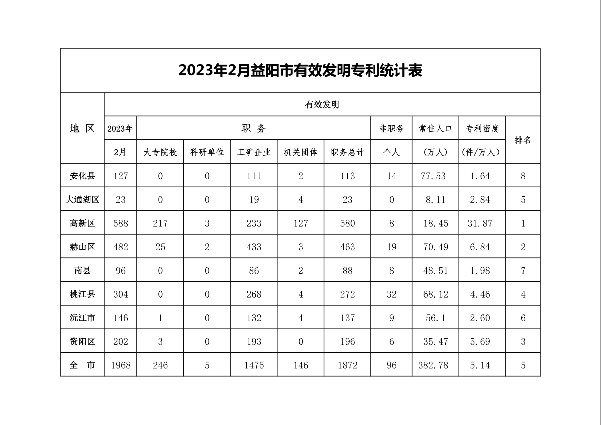 | 2023年2月益阳市有效发明专利统计表 |