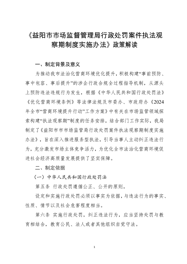 | 《益阳市市场监督管理局行政处罚案件执法观察期制度实施办法》政策解读 |