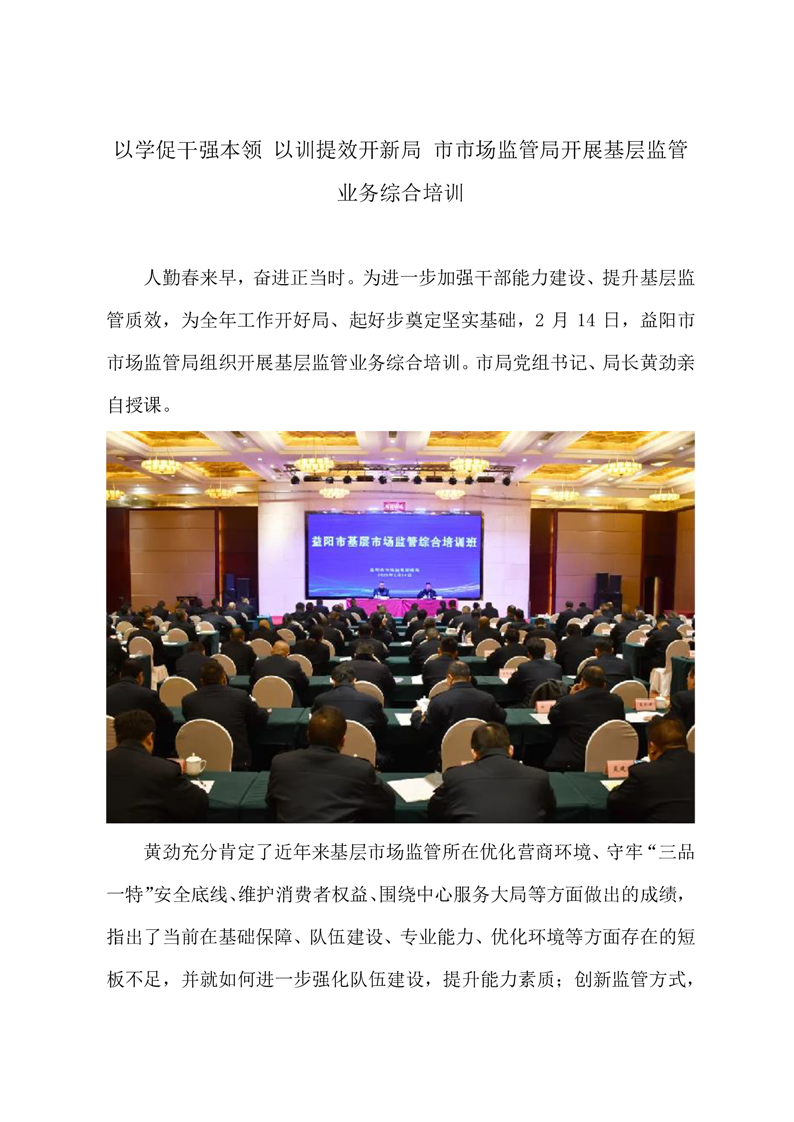 | 以学促干强本领 以训提效开新局 市市场监管局开展基层监管业务综合培训 |