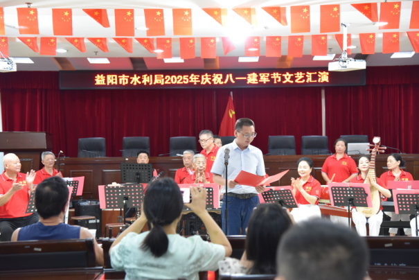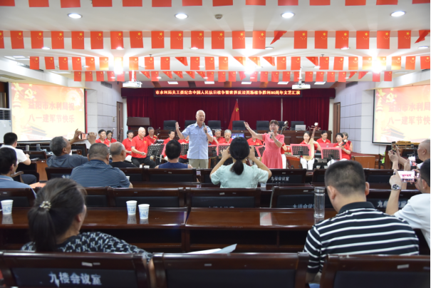 7月25日上午,为铭记历史、弘扬爱国主义精神,市水利局举办庆祝八一建军节文艺汇演,以艺术形式纪念中国人民抗日战争暨世界反法西斯战争胜利80周年。局机关干部职工及离退休干部代表现场观演,共同追忆革命先辈光辉足迹,局党组成员、副局长王进锋致辞并宣布文艺汇演开始。