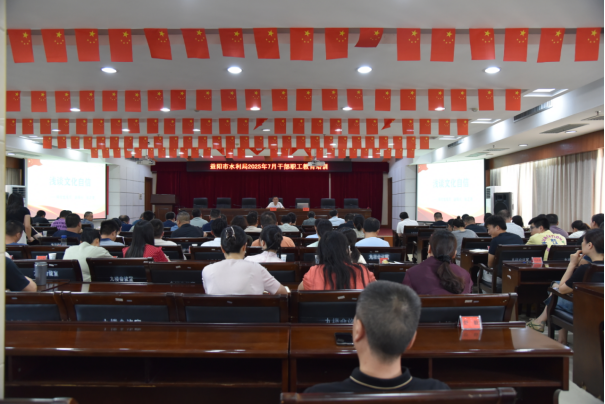 7月18日下午,市水利局组织开展2025年7月干部职工学习教育培训,局机关全体干部职工,局直属单位水管办、砂管办全体人员,物资储备中心班子成员参加,局党组成员、副局长王进锋主持会议。