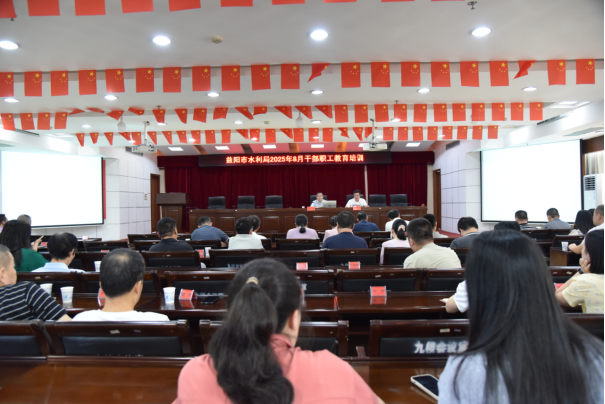 8月22日下午,市水利局组织开展2025年8月干部职工学习教育培训,局机关全体干职工,水管会、砂管办全体人员,防汛物资储备中心班子成员和负责保密工作的工作人员参加,局党组成员、副局长马腾飞主持会议。