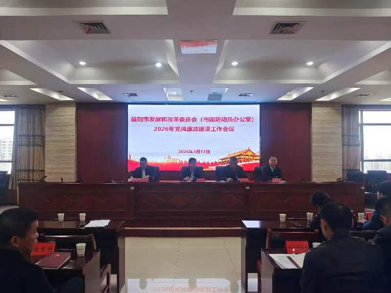 3月13日上午,益阳市发展和改革委员会(市国防动员办公室)召开2026年党风廉政建设工作会议。会议由委党组成员、副主任刘洪赛主持。党组成员、驻委纪检监察组组长龚建军宣讲市纪委关于加强政治监督、推进扎紧织密“不能腐”制度笼子专项行动的相关文件。党组书记、主任胡跃龙以《以更高标准、更实举措纵深推进发改(国动)党风廉政建设》为题作党风廉政建设工作报告。会议组织观看了警示教育片《不可触碰的底线2025》。