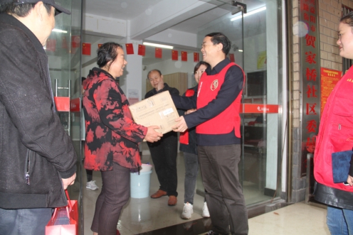 李晓跃将微心愿慰问品发放到居民手中