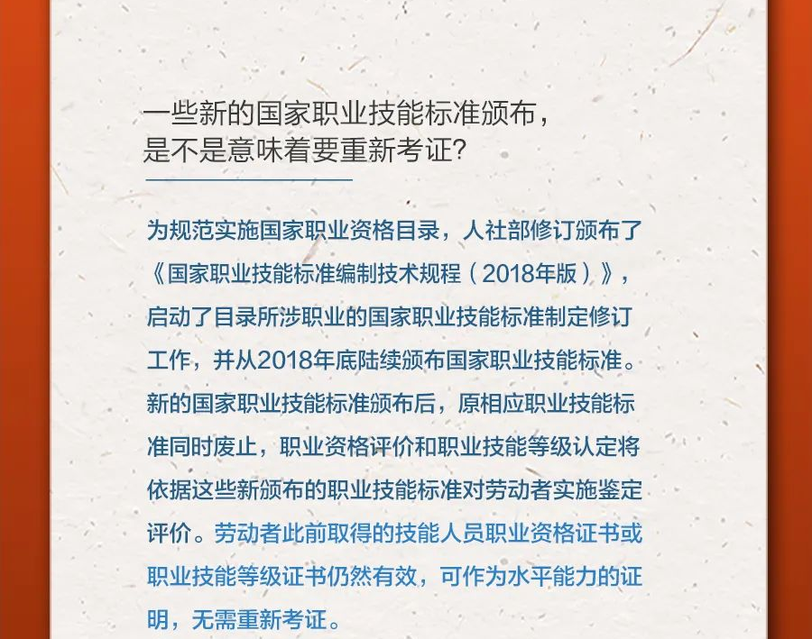 【温暖社保·每周一课】一些新的国家职业技能标准颁布,是不是意味着要重新考证?