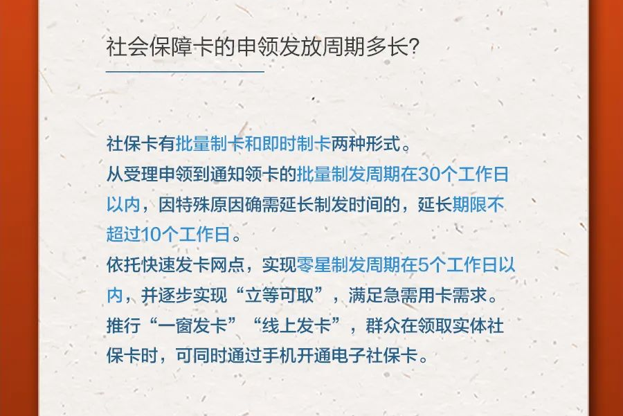 【温暖社保·每周一课】社会保障卡的申领发放周期多长?