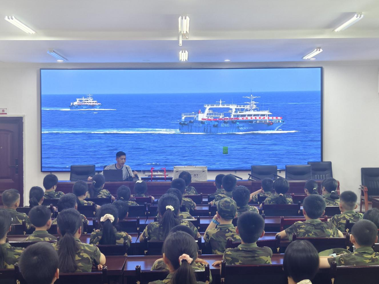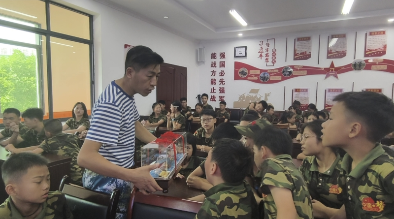 “同学们,你们知道我们国家现在有几艘航母吗?国产航母有哪几艘?”7月8日,怀化市会同县第五届“少年迷彩行 点燃从军梦”军事夏令营的国防教育课堂上,益阳市安化县海军退役军人志愿者以一个关于深蓝力量的提问,开启了这堂跨越山海的国防课程。