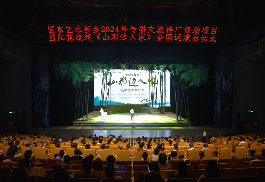 8月21日晚,国家艺术基金2024年度传播交流推广资助项目益阳花鼓戏《山那边人家》全国巡演在益阳市赫山区谢林港镇清溪村清溪剧院启动。省文化和旅游厅原副厅长张帆,市人大常委会原党组书记、主任彭建忠,市政协党组成员、副主席陶汉文,省文化和旅游厅艺术处、省艺术研究院、市直相关单位负责人,省内知名文艺专家等出席。
