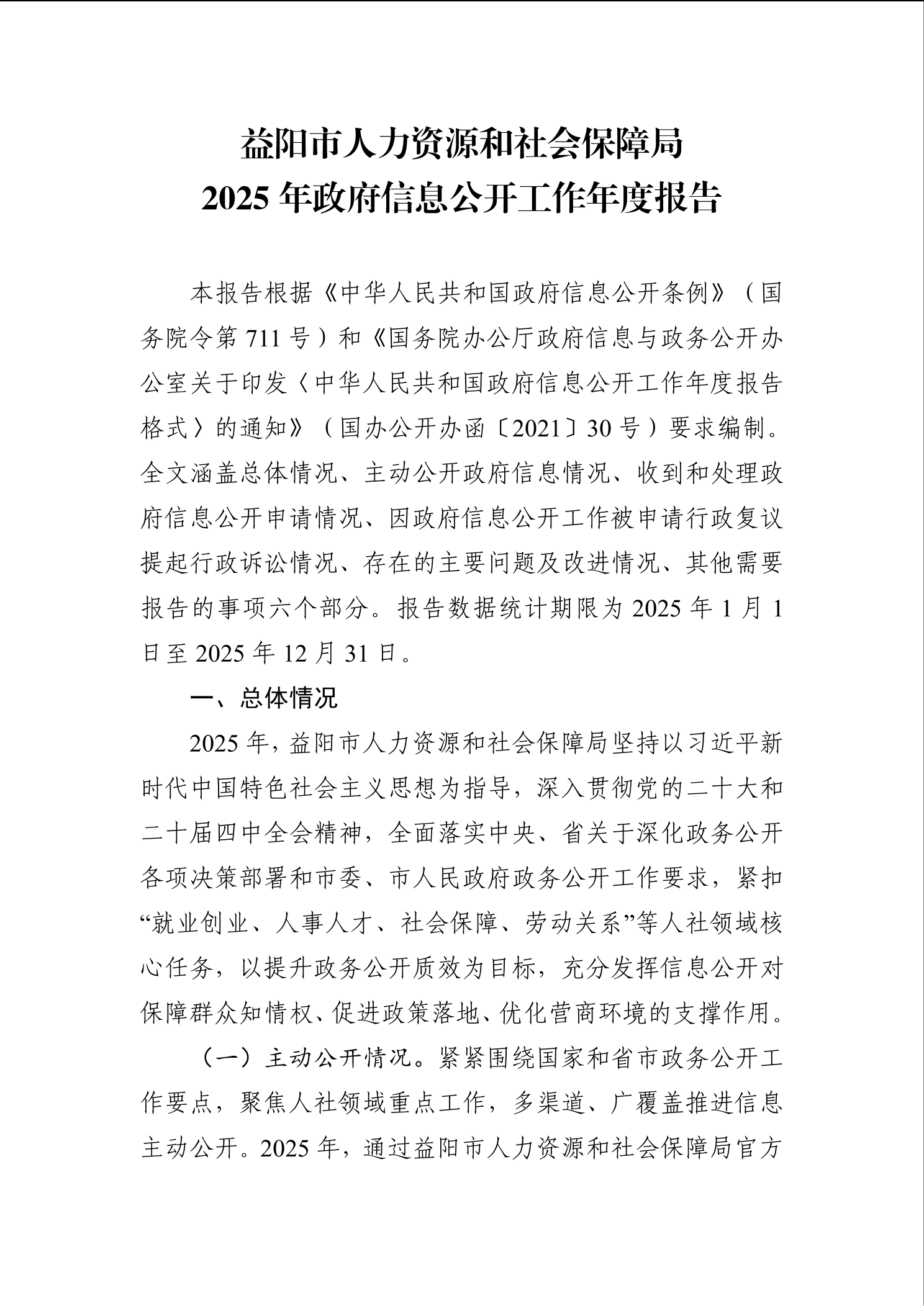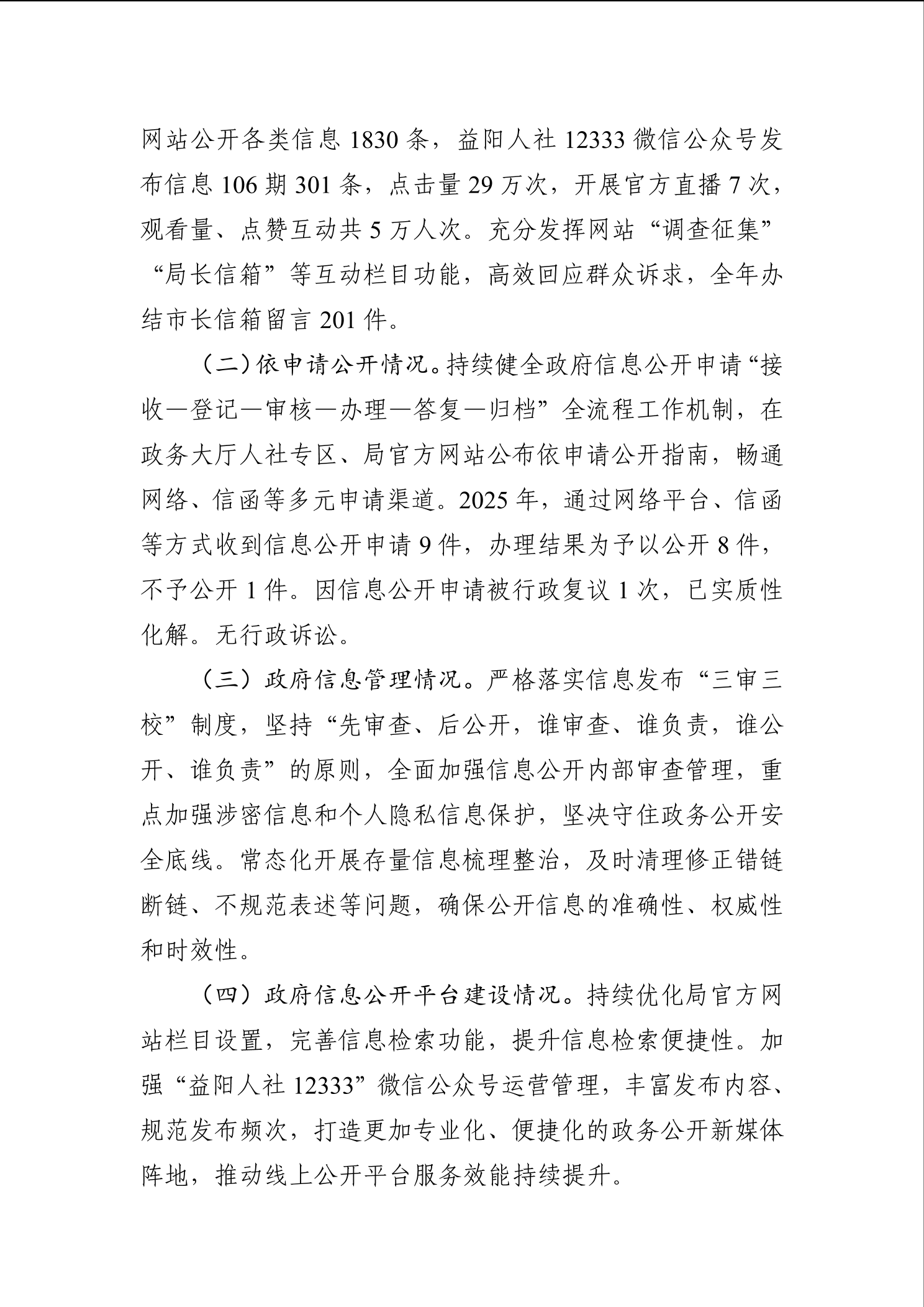 益阳市人力资源和社会保障局 2025年政府信息公开工作年度报告