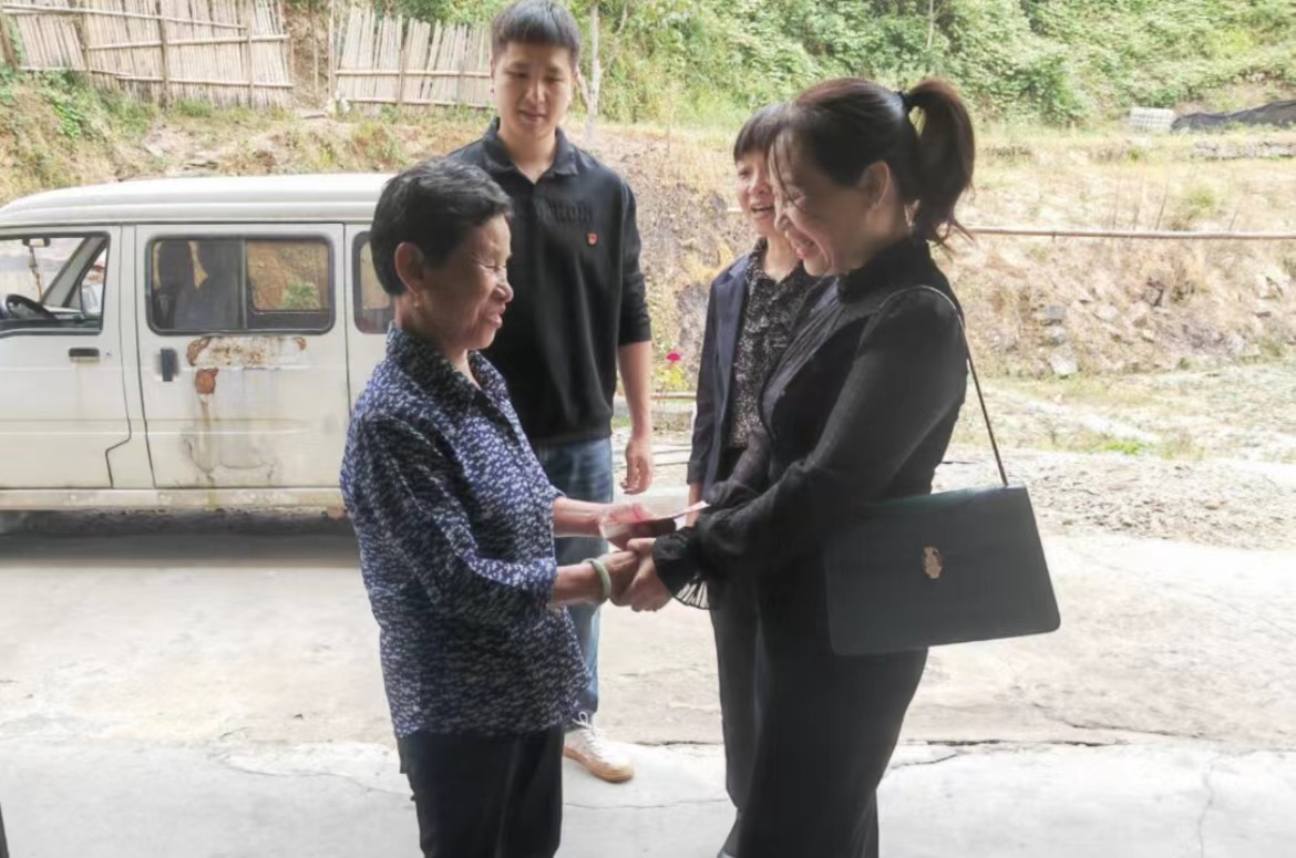 滔溪镇新联村村民刘开平上山砍竹时,发生意外,被竹子贯穿胸腔,无钱医治。一双儿女的学费、生活费更是让一家人一筹莫展。周金泉又向这个苦难的家庭伸出援助之手,第一时间送来5000元,并结对资助刘开平的两个孩子。刘开平的女儿考上大学后,她又承担了其大部分的学费和生活费。