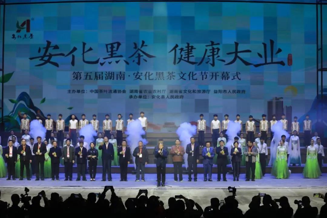 本次黑茶文化节以“安化黑茶、健康大业”为主题,由中国茶叶流通协会、湖南省文化和旅游厅、湖南省农业农村厅、益阳市人民政府主办,安化县人民政府承办。省政协副主席、致公党中央常委、省委主委胡旭晟宣布:第五届湖南·安化黑茶文化节开幕。中央台办、国台办副主任龙明彪,省人大常委会原副主任蒋作斌,酒泉卫星发射中心原政委夏晓鹏,武警上海总队原司令员朱宏,湖北省军区原副政委李尚林,中国工程院院士刘仲华,中国茶叶流通协会会长王庆,农业农村部信息中心副总工程师、研究员韩福军,省政府驻京办主任魏旋君,省委台办、省政府台办主任阳卫国,省政协教科文卫委主任毛学军,省粮食局党组书记、局长陈冬贵,省委农办副主任、省农业农村厅党组副书记、一级巡视员贺丽君,省文化和旅游厅副厅长黄东红,胡润百富董事长胡润,中国农科院茶叶研究所所长姜仁华,小罐茶公司董事长杜国楹等国内外嘉宾出席开幕式。