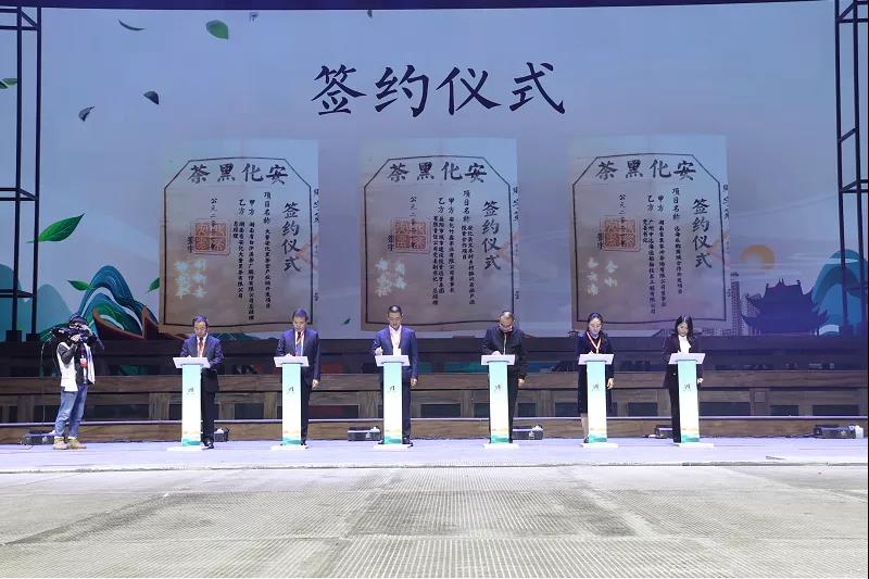 14个项目在开幕式上签约,合同引资达102.408亿元,比上届黑茶文化节增长163.94%。签约的项目主要有中国水利水电第八工程局有限公司投资50亿元的安化县玉溪茶旅康养小镇开发项目,安徽海螺水泥股份有限公司投资23亿元的益阳海螺新材料、新能源综合开发项目,湖南胖鱼文化传媒有限公司投资2.8亿元的安化茶乡花海高端茶具、家居生产项目,湖南省白沙溪茶厂股份有限公司投资5亿元的大誉安化黑茶全产业链开发项目等。