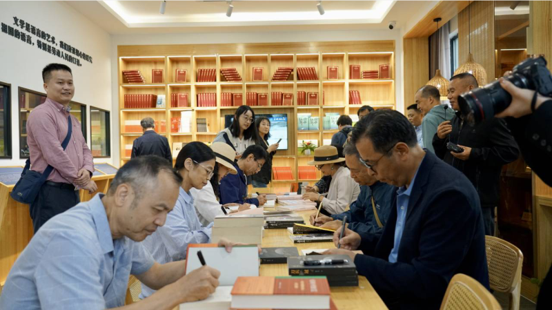 作家一行来到清溪村,先后走进丰收广场、清溪展厅、周立波故居、中国当代作家签名版图书珍藏馆、清溪书屋等,了解清溪村以文化振兴推动乡村振兴的生动实践,以及书屋、珍藏馆等文化设施的管理运营情况。作家们一路参观一路交流,感受“山乡巨变”。大家纷纷表示,在清溪感受到了文学的力量、人民的力量、发展的力量,不仅看到了前辈作家“深入生活、扎根人民”的创作足迹,也深刻感悟了文学跟时代、跟生活、跟人民的关系,为多民族文学创作增添了新动力。