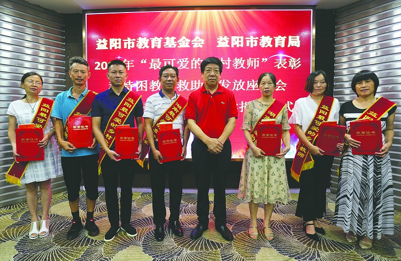 市教育基金会理事长周再华为“最可爱的乡村教师”颁奖。