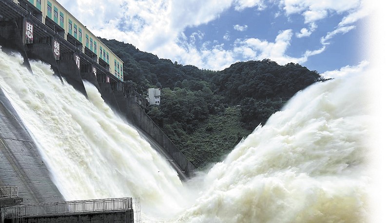 ▲7月4日,安化县柘溪水电站开闸泄洪,截至当日11时,泄洪流量最大每秒4000立方米。甘果摄