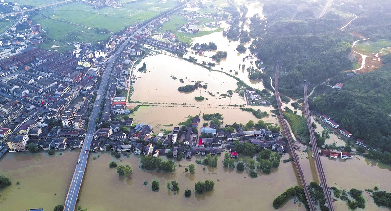7月2日,益阳高新区谢林港镇部分房舍淹入洪水中。吴胜琳摄