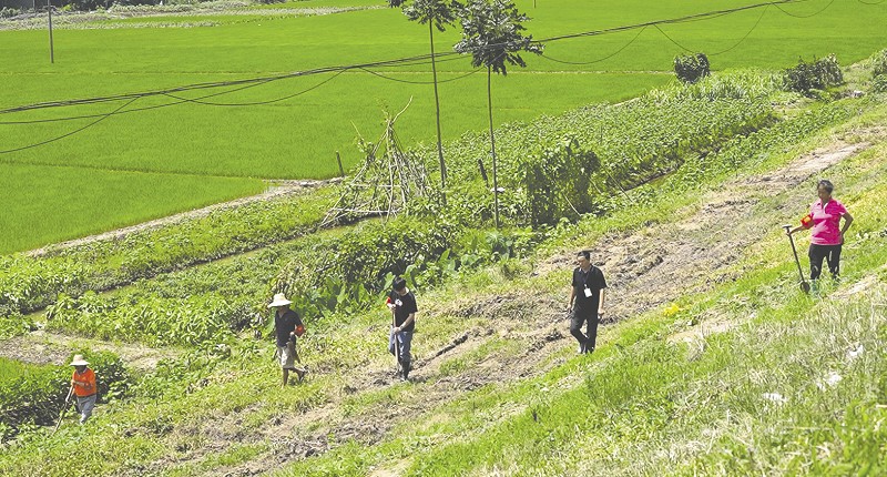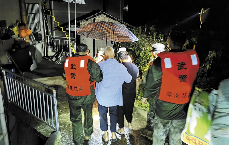 7月4日,南县厂窖镇汀合洲中队守堤人员进行日常巡查。自南县启动防汛Ⅱ级响应以来,巡查大堤由沿线50米扩大到100米。刘馨予摄
