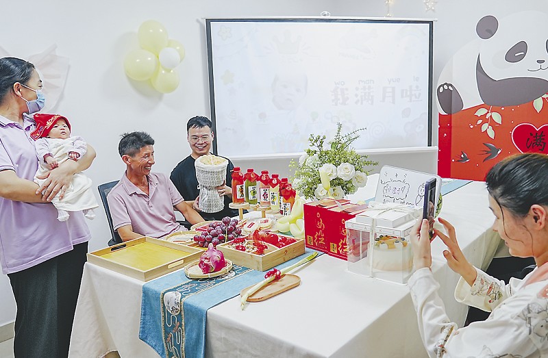 月子中心工作人员为宝宝举办满月仪式。黄云摄