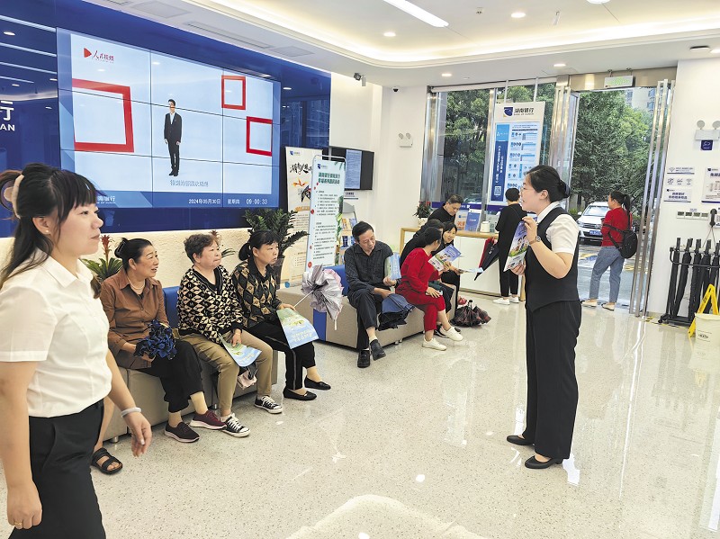 湖南银行益阳分行员工开展厅堂金融知识宣传。