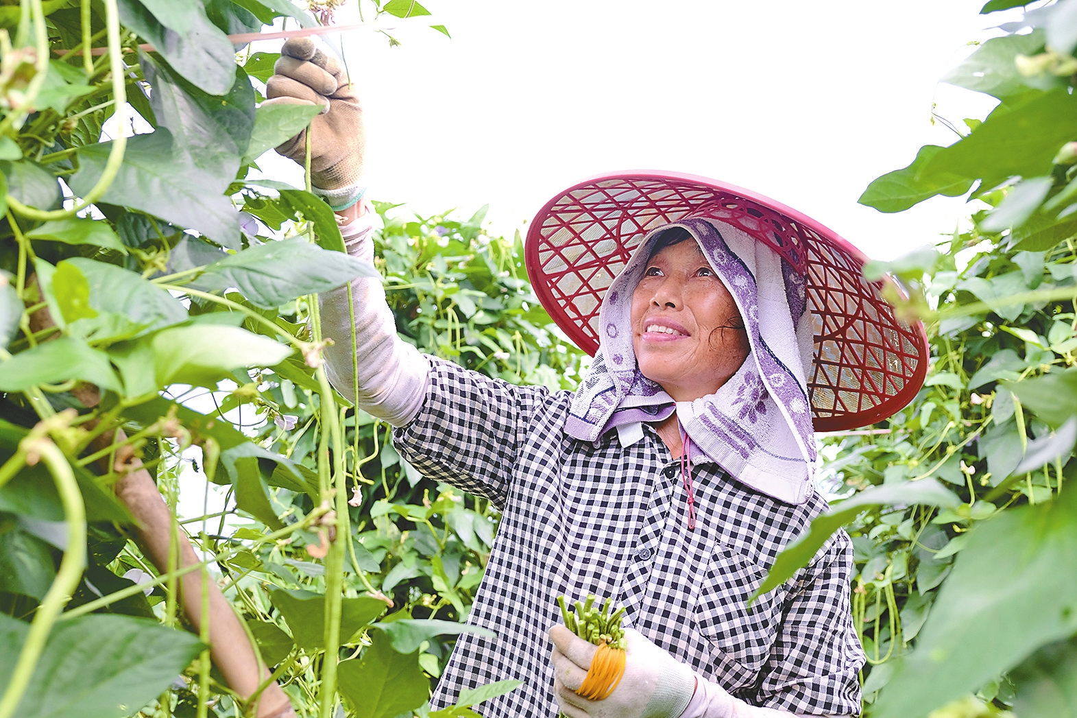 村民在家门口的豆角基地忙碌采收,实现就近就业增收。陈徐文倩摄