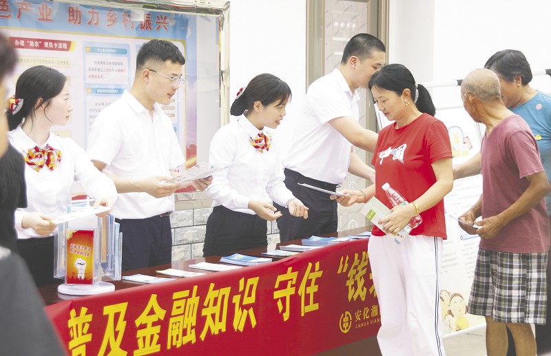 安化湘淮村镇银行工作人员为村民普及金融知识。