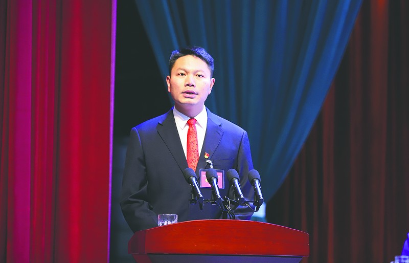 区委常委、常务副区长胡金勇作政府工作报告。李成刚摄