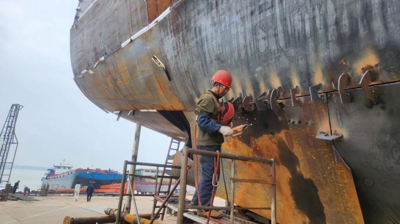 4月10日,气温适宜。坐落在南洞庭湖畔的桃花江游艇制造基地,车间内焊花闪闪,54岁的钟建书等人,正在为一艘大型钢质船焊接钢梁。厂区内,有10多艘8000吨位以上的钢质船已接近完工,另一艘油漆一新的大型货船下水不久,等待交货。在游艇生产区域,一批公务艇已蓄势待发,工人们在进行内部装饰。4月初刚刚与基地合作的天津瑞特海洋工程有限公司,顺利开工。负责人黄辉龙兴奋地说,第一批3000多万元的新能源客船业务正在有序施工。